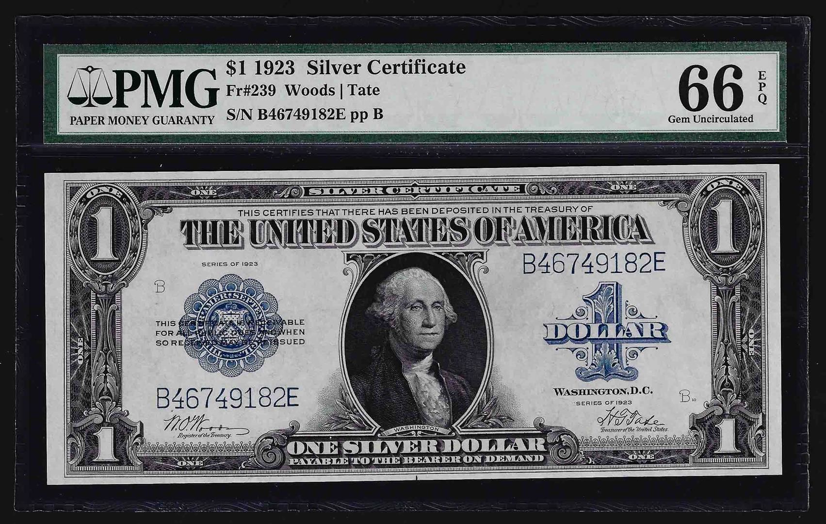 One 1923 $1 Silver Certificate Note PMG Gem Uncirculated 66EPQ. PMG Certified.
