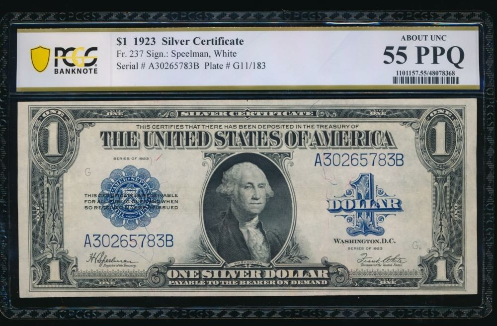 One 1923 $1 Silver Certificate PCGS 55PPQ.