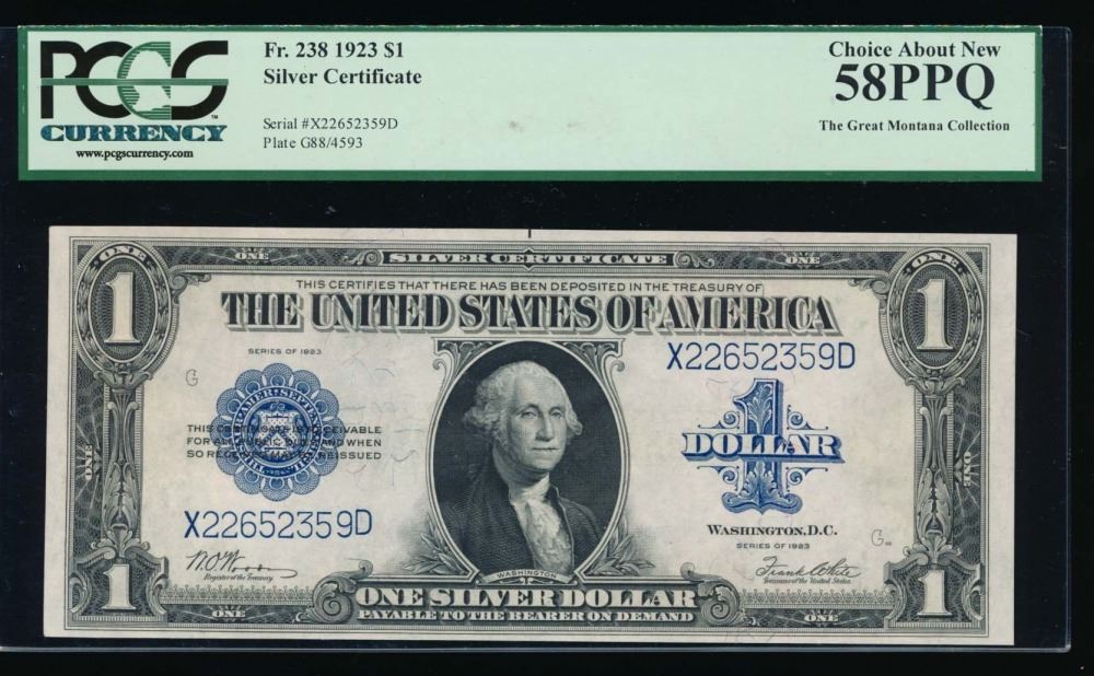 One 1923 $1 Silver Certificate PCGS 58PPQ.