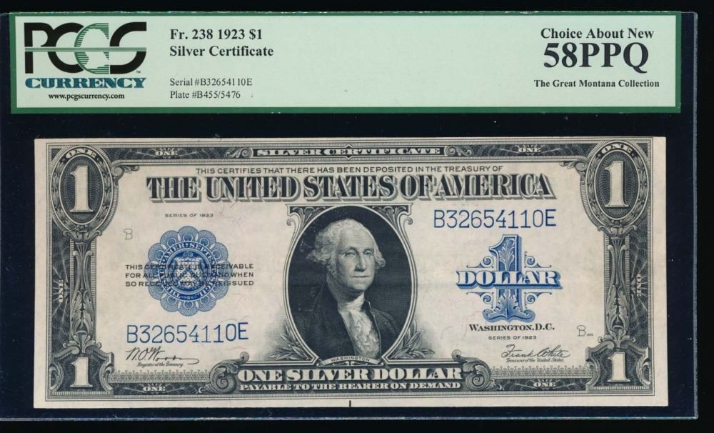 One 1923 $1 Silver Certificate PCGS 58PPQ.