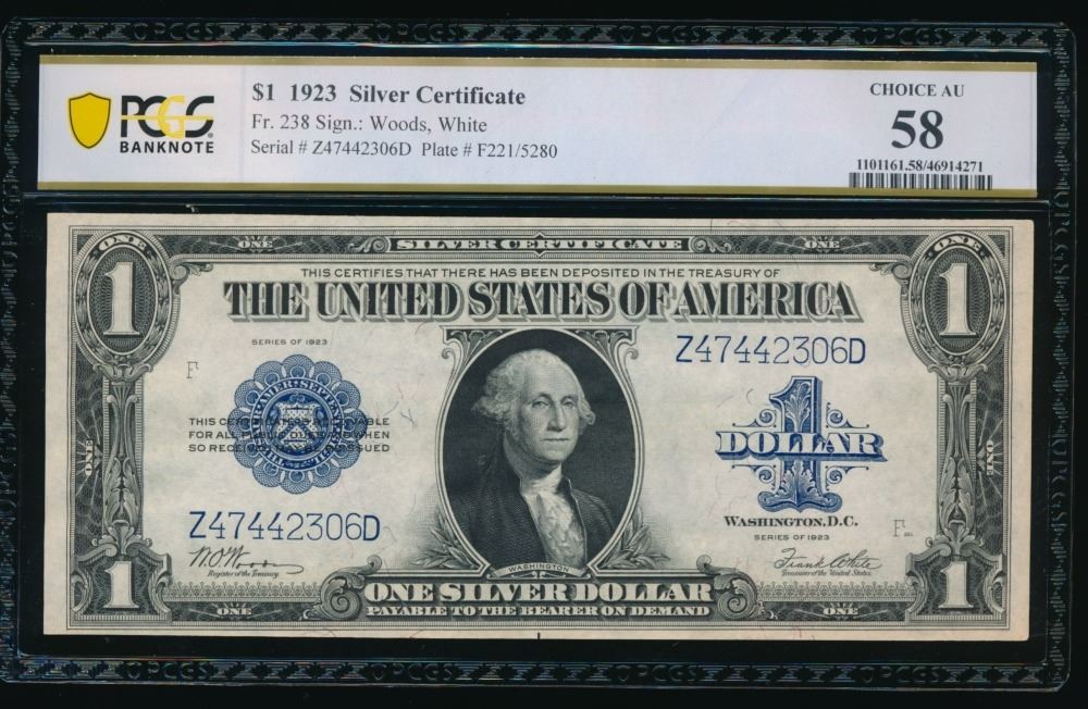 One 1923 $1 Silver Certificate PCGS 58.