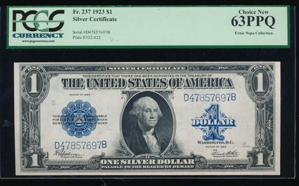 One 1923 $1 Silver Certificate PCGS 63PPQ.