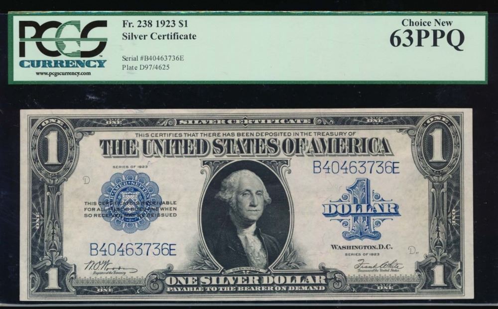 One 1923 $1 Silver Certificate PCGS 63PPQ.