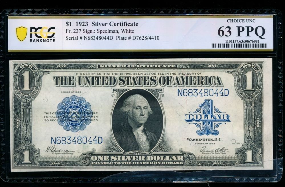 One 1923 $1 Silver Certificate PCGS 63PPQ.
