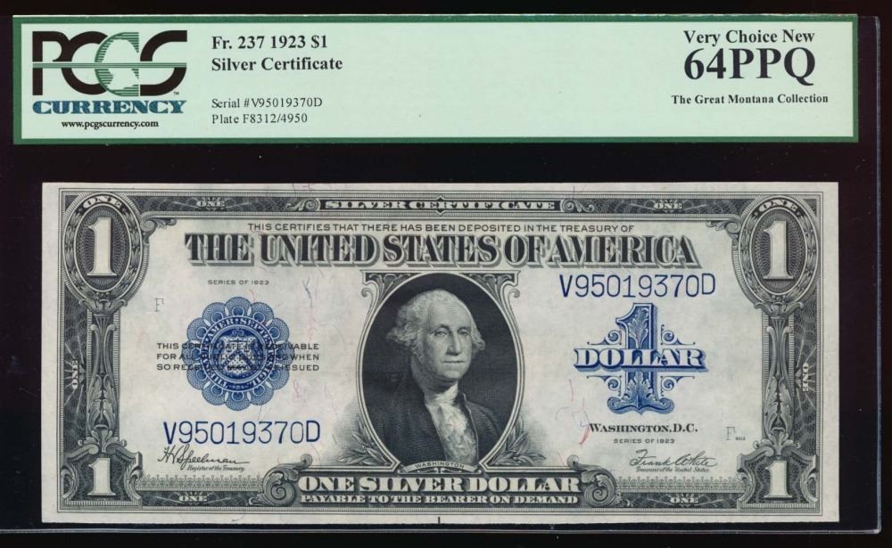 One 1923 $1 Silver Certificate PCGS 64PPQ.