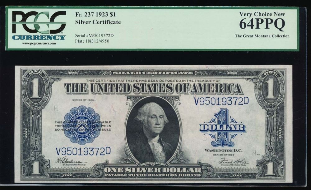 One 1923 $1 Silver Certificate PCGS 64PPQ.
