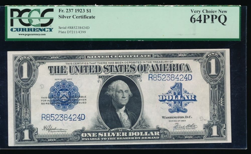 One 1923 $1 Silver Certificate PCGS 64PPQ.