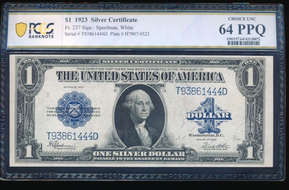 One 1923 $1 Silver Certificate PCGS 64PPQ.