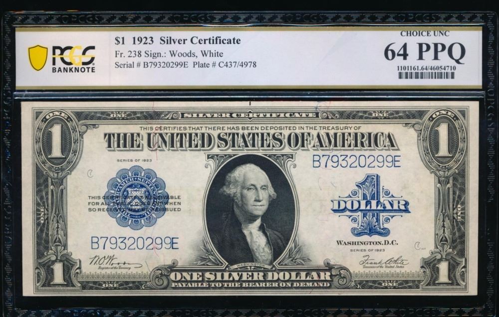 One 1923 $1 Silver Certificate PCGS 64PPQ.