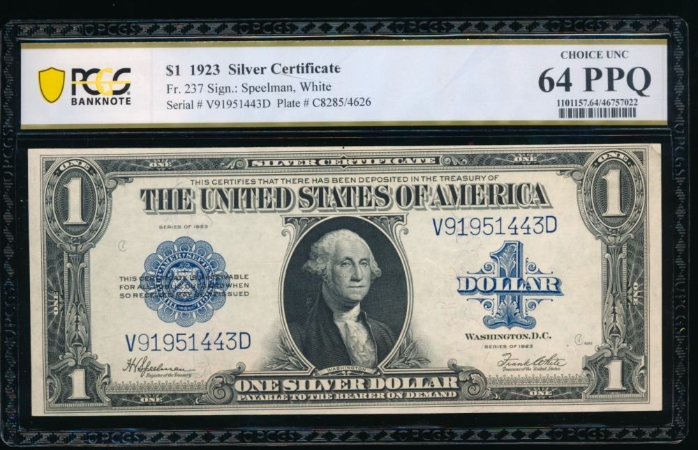 One 1923 $1 Silver Certificate PCGS 64PPQ.