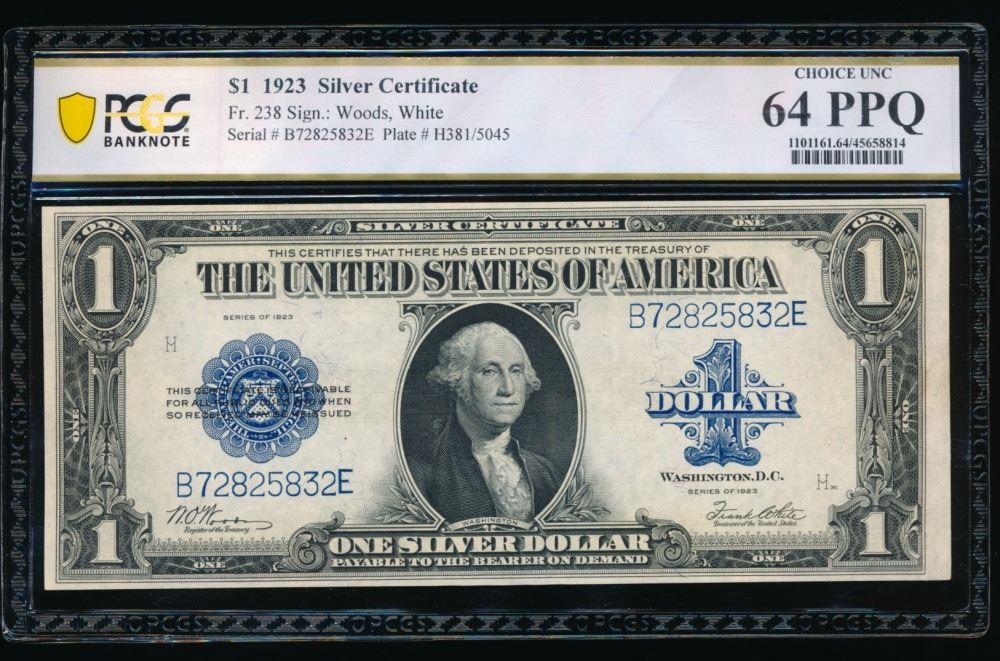 One 1923 $1 Silver Certificate PCGS 64PPQ.