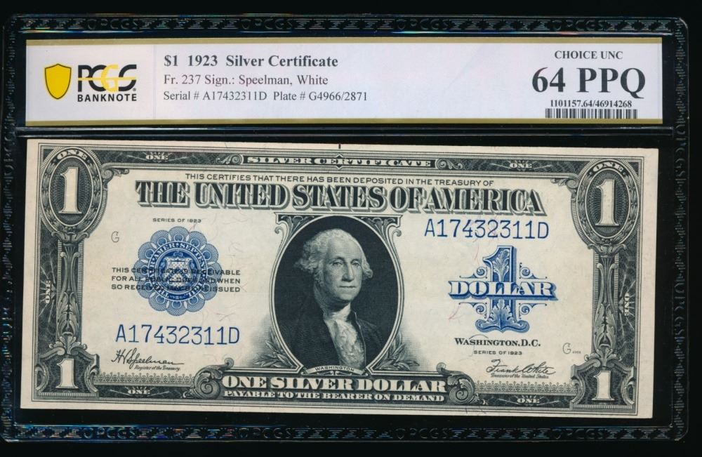 One 1923 $1 Silver Certificate PCGS 64PPQ.