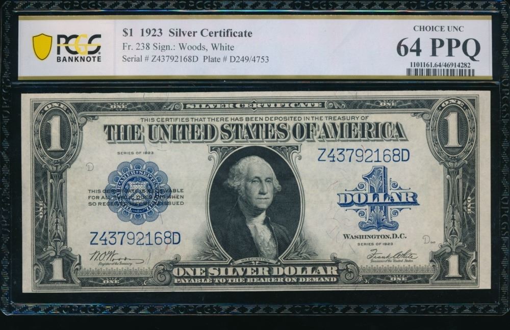 One 1923 $1 Silver Certificate PCGS 64PPQ.
