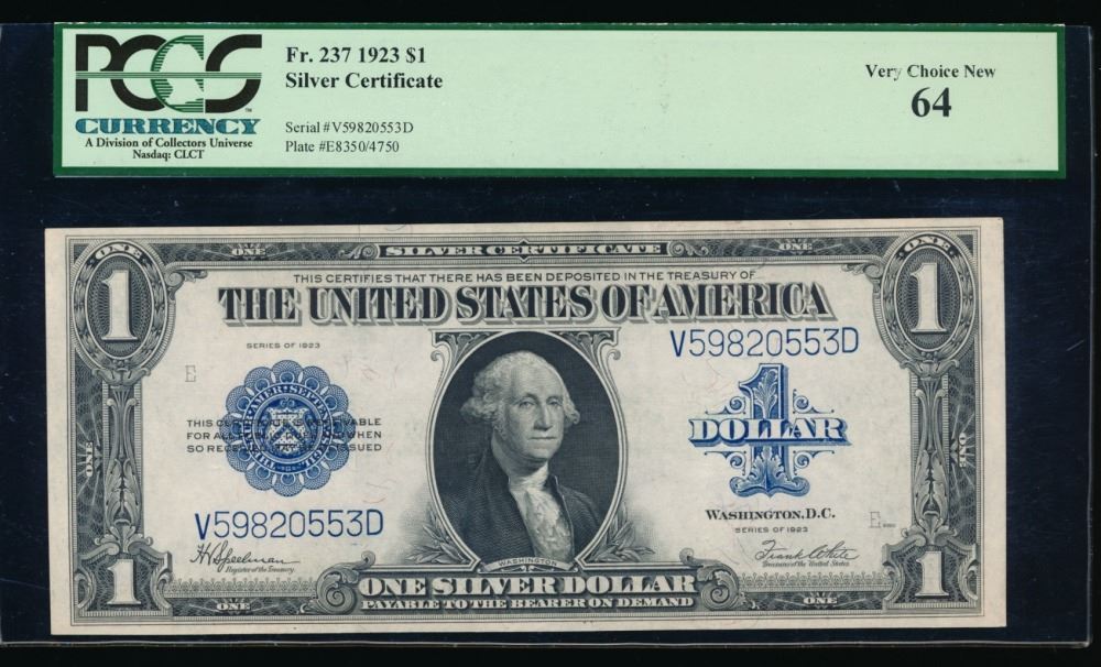 One 1923 $1 Silver Certificate PCGS 64.