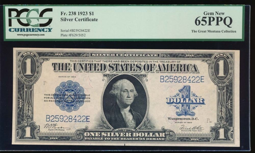 One 1923 $1 Silver Certificate PCGS 65PPQ.