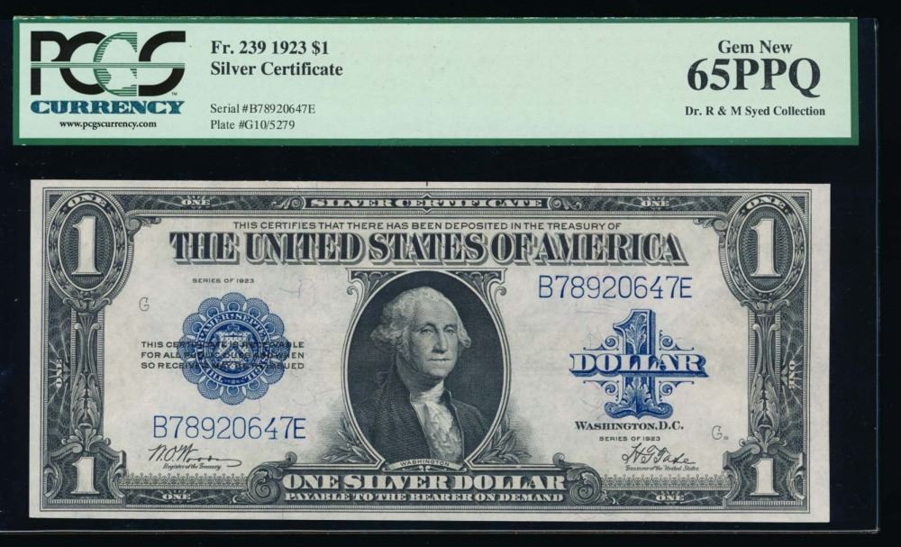 One 1923 $1 Silver Certificate PCGS 65PPQ.