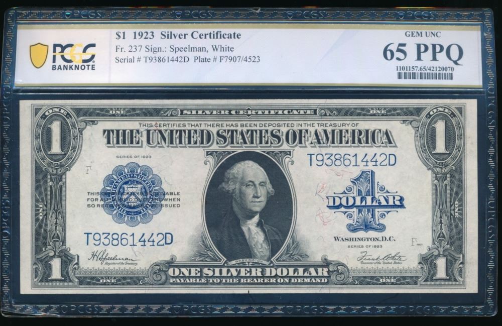 One 1923 $1 Silver Certificate PCGS 65PPQ.