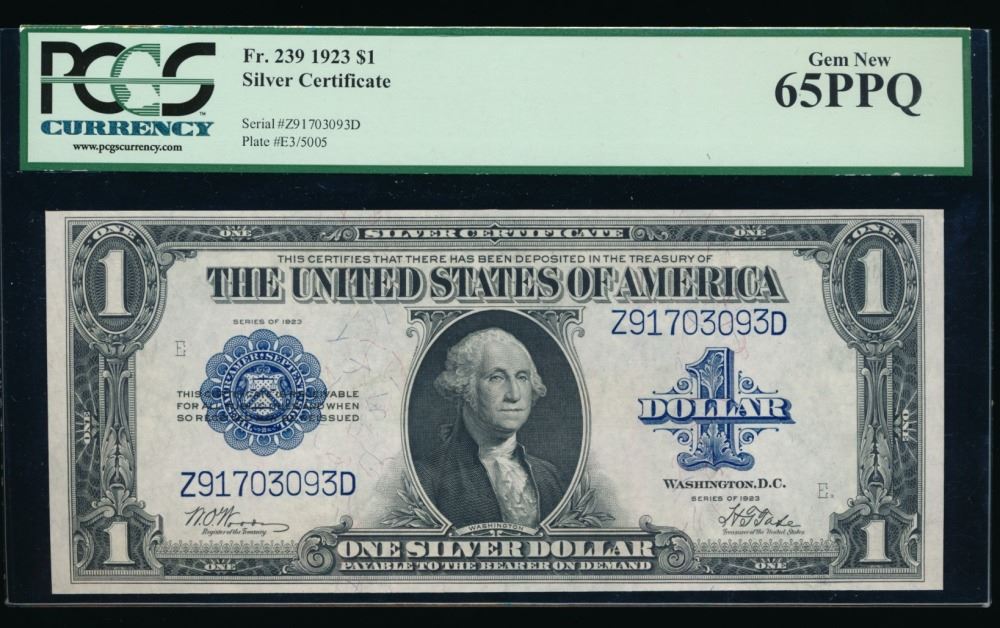 One 1923 $1 Silver Certificate PCGS 65PPQ.