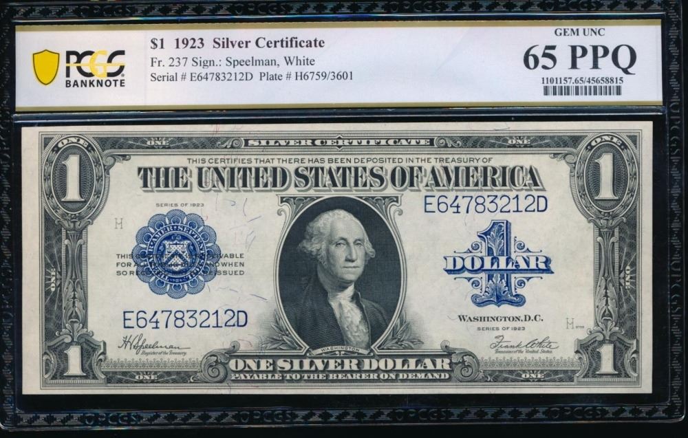 One 1923 $1 Silver Certificate PCGS 65PPQ.