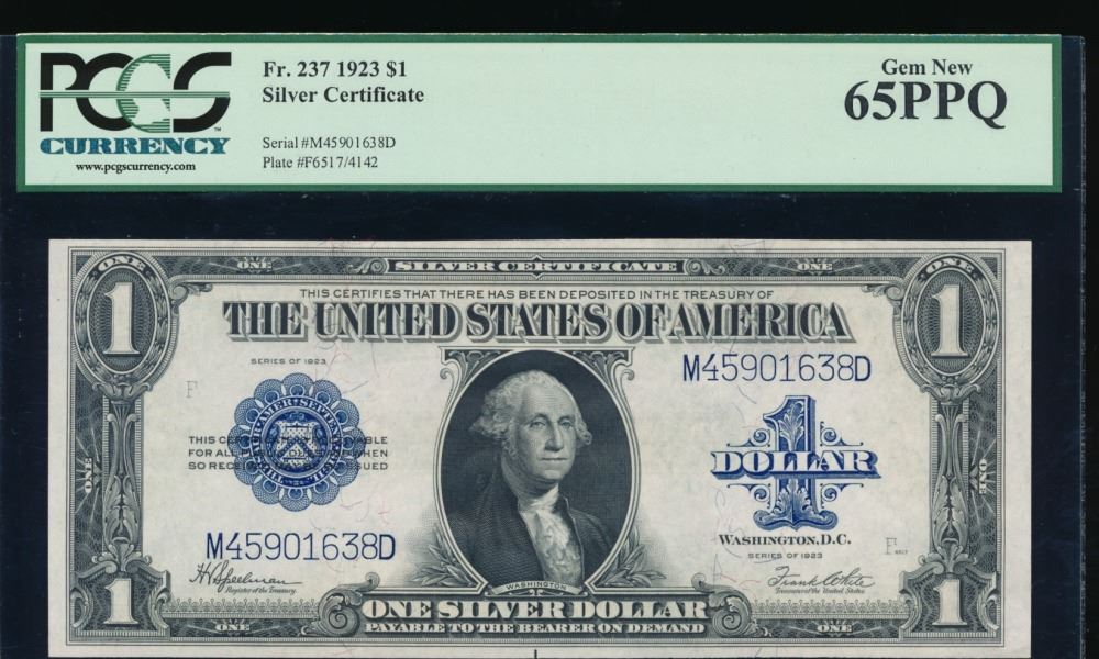 One 1923 $1 Silver Certificate PCGS 65PPQ.