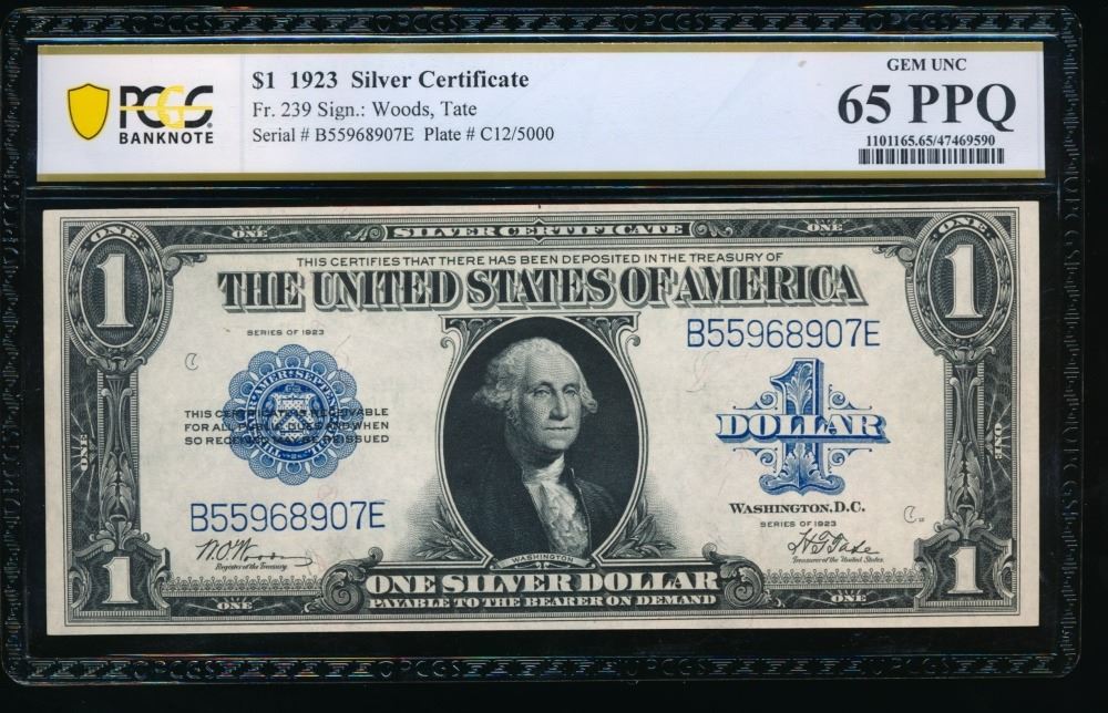 One 1923 $1 Silver Certificate PCGS 65PPQ.