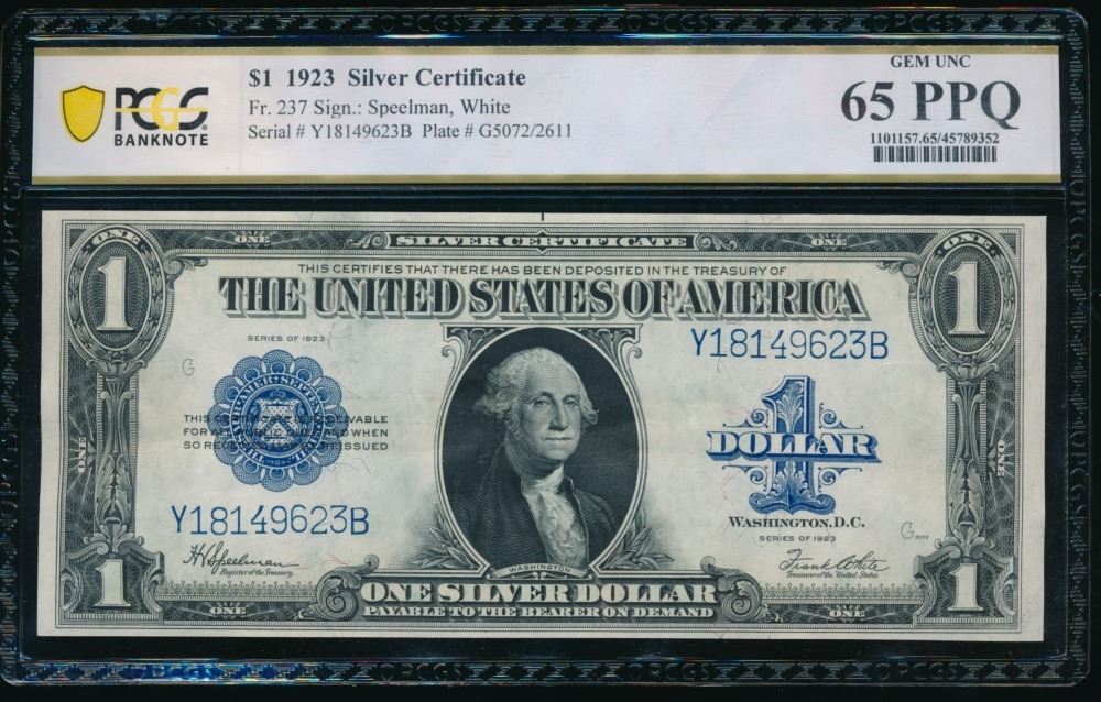 One 1923 $1 Silver Certificate PCGS 65PPQ.