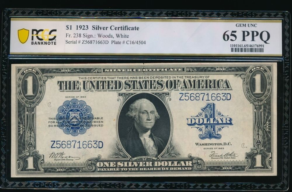 One 1923 $1 Silver Certificate PCGS 65PPQ.