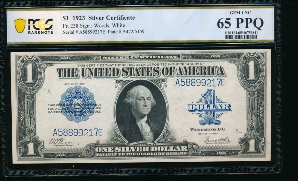 One 1923 $1 Silver Certificate PCGS 65PPQ.