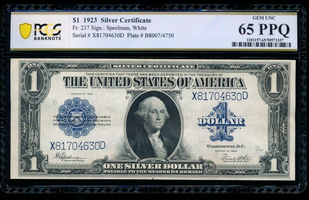 One 1923 $1 Silver Certificate PCGS 65PPQ.