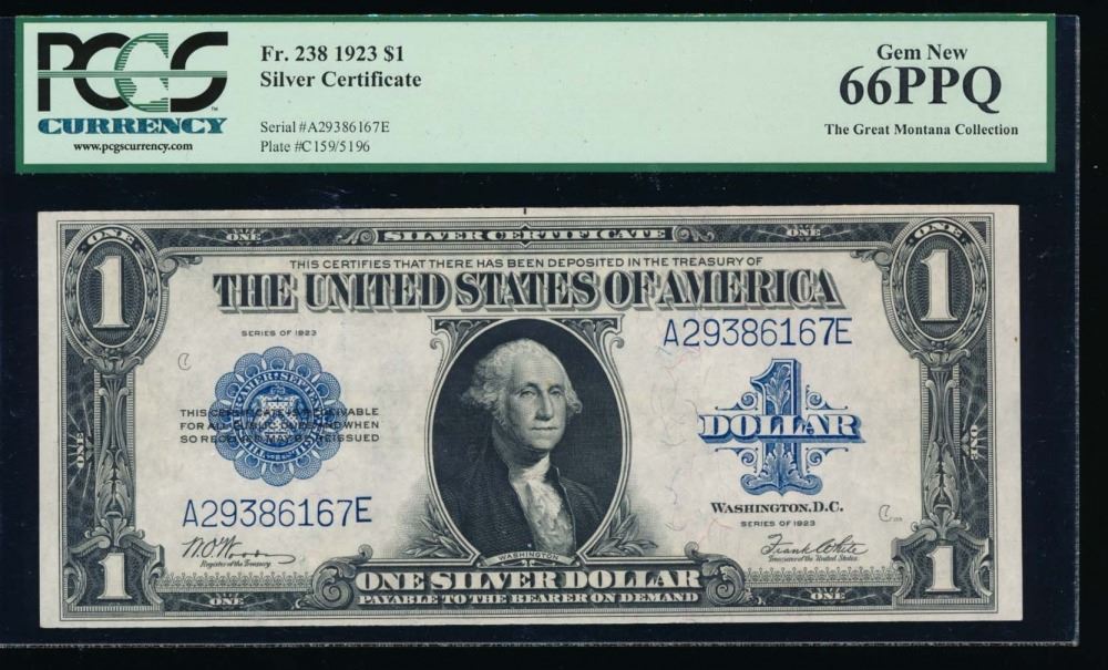 One 1923 $1 Silver Certificate PCGS 66PPQ.