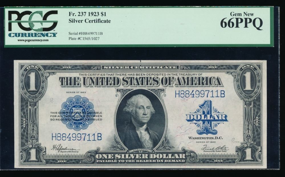 One 1923 $1 Silver Certificate PCGS 66PPQ.