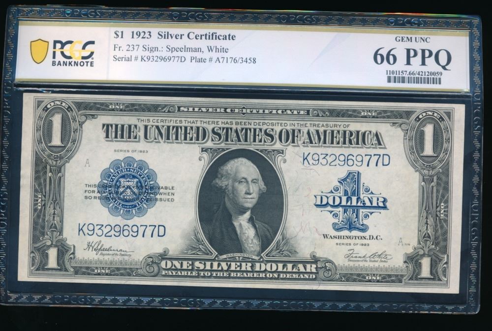 One 1923 $1 Silver Certificate PCGS 66PPQ.
