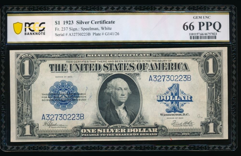 One 1923 $1 Silver Certificate PCGS 66PPQ.