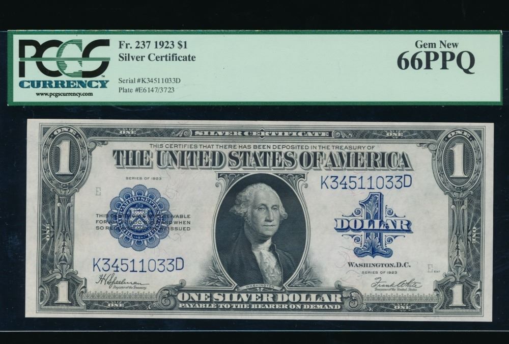 One 1923 $1 Silver Certificate PCGS 66PPQ.