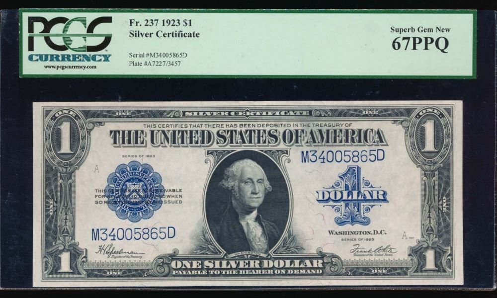 One 1923 $1 Silver Certificate PCGS 67PPQ.
