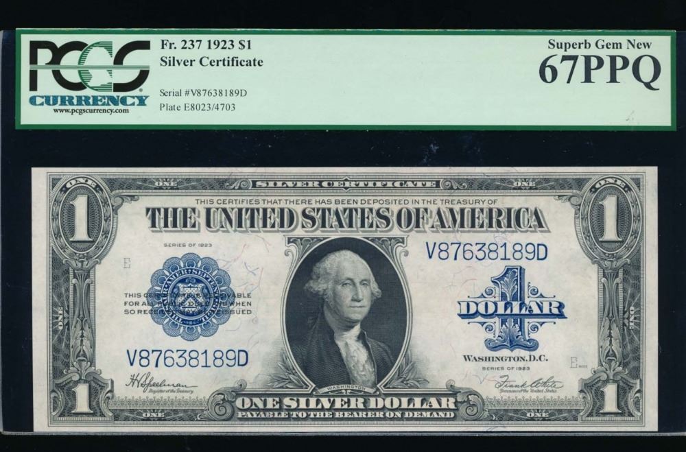 One 1923 $1 Silver Certificate PCGS 67PPQ.