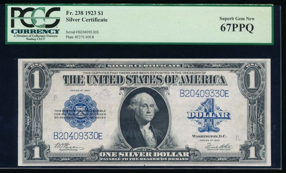 One 1923 $1 Silver Certificate PCGS 67PPQ.