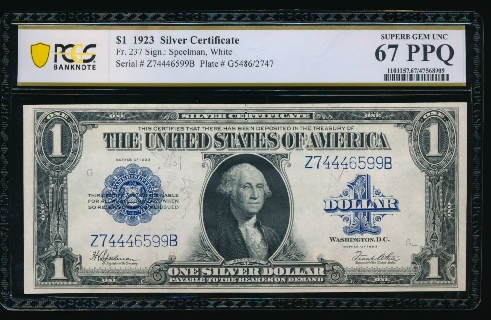 One 1923 $1 Silver Certificate PCGS 67PPQ.