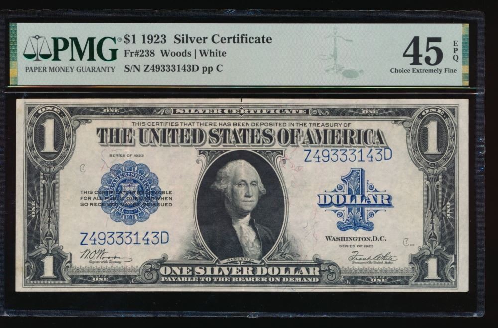 One 1923 $1 Silver Certificate PMG 45EPQ.