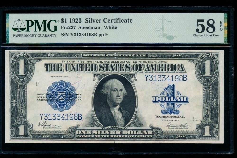 One 1923 $1 Silver Certificate PMG 58EPQ.