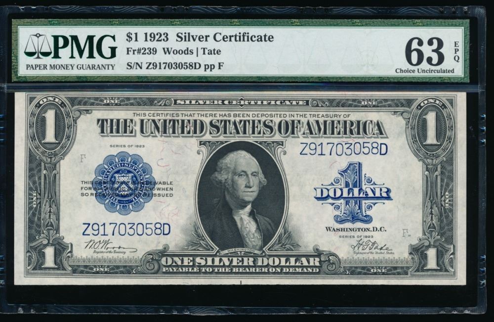 One 1923 $1 Silver Certificate PMG 63EPQ.