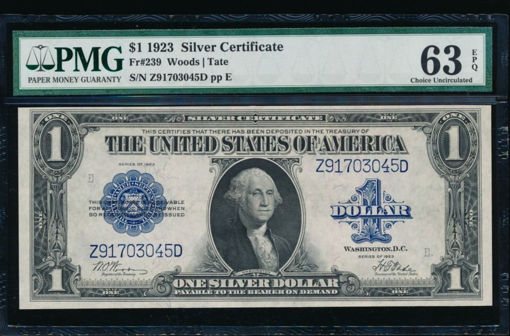 One 1923 $1 Silver Certificate PMG 63EPQ.