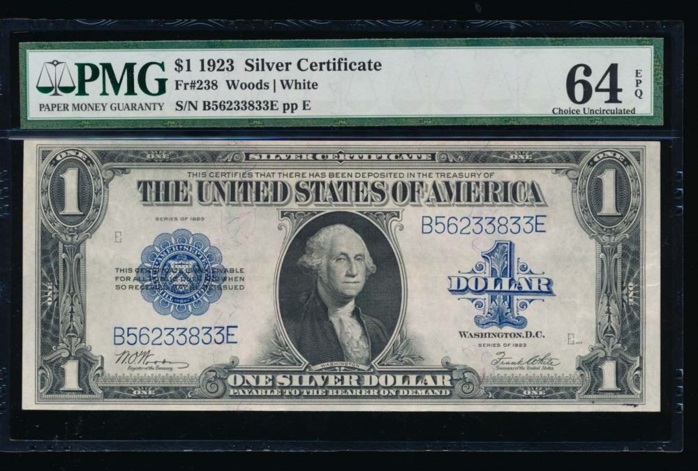 One 1923 $1 Silver Certificate PMG 64EPQ.