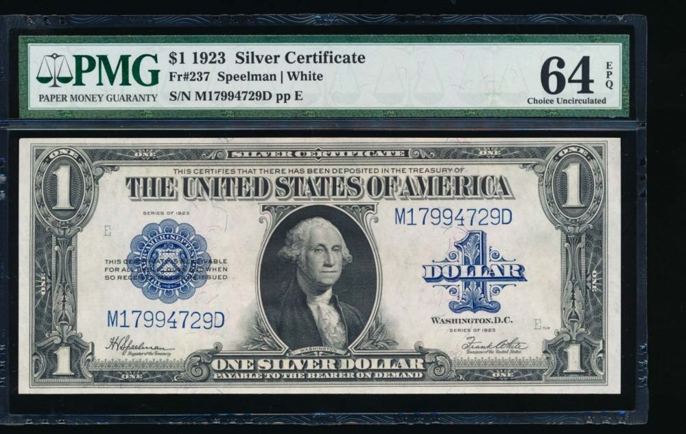 One 1923 $1 Silver Certificate PMG 64EPQ.