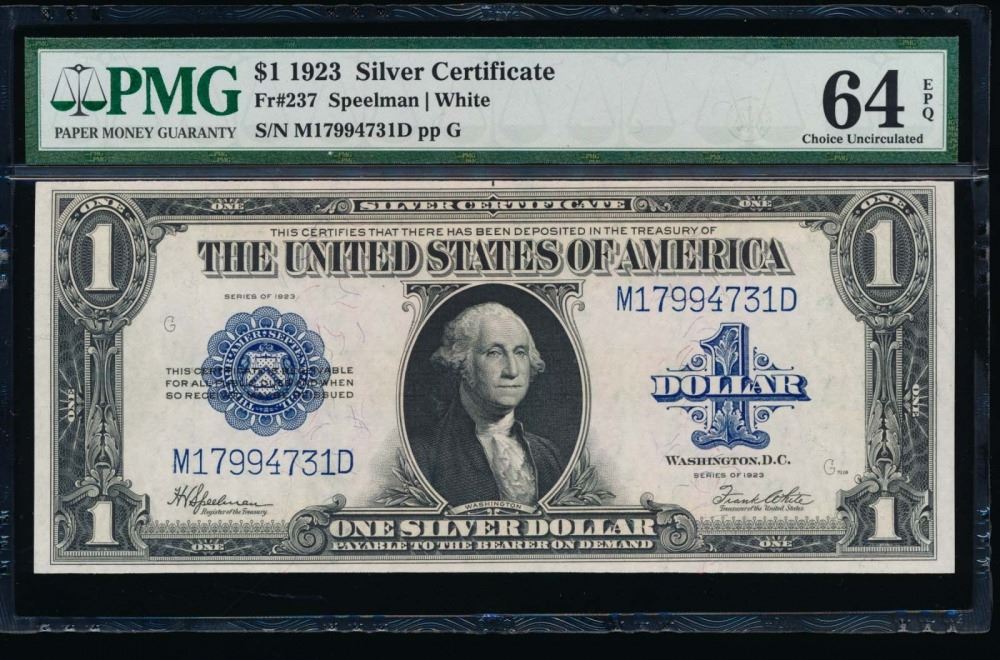 One 1923 $1 Silver Certificate PMG 64EPQ.