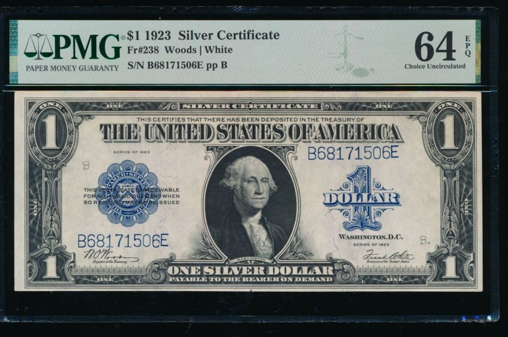 One 1923 $1 Silver Certificate PMG 64EPQ.