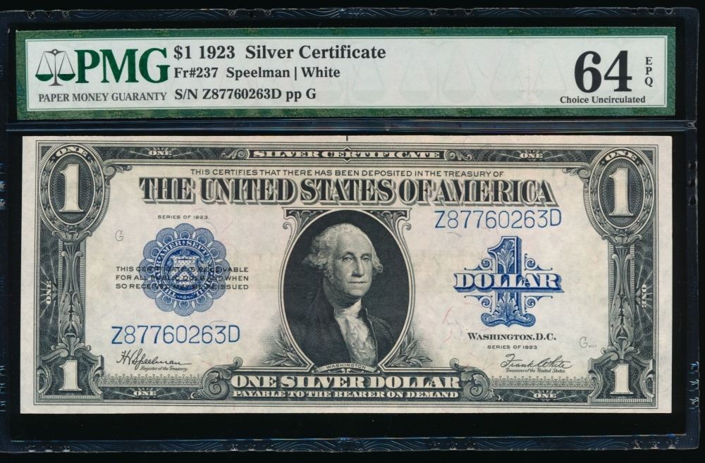 One 1923 $1 Silver Certificate PMG 64EPQ.