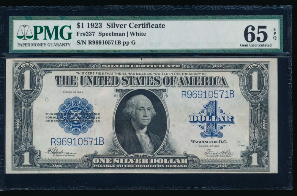 One 1923 $1 Silver Certificate PMG 65EPQ.