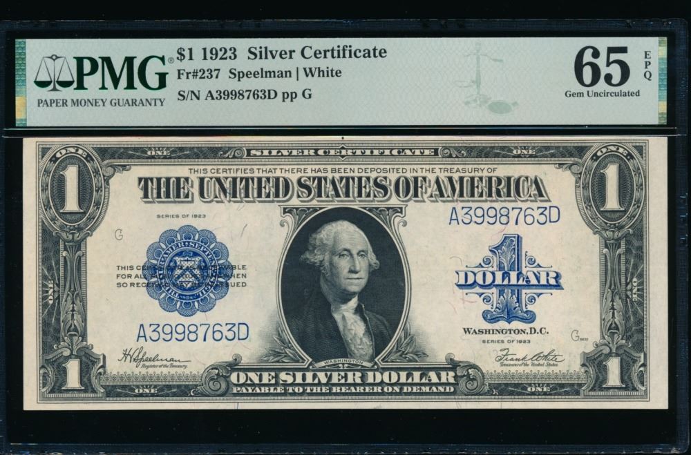 One 1923 $1 Silver Certificate PMG 65EPQ.