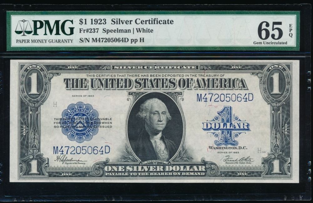 One 1923 $1 Silver Certificate PMG 65EPQ.